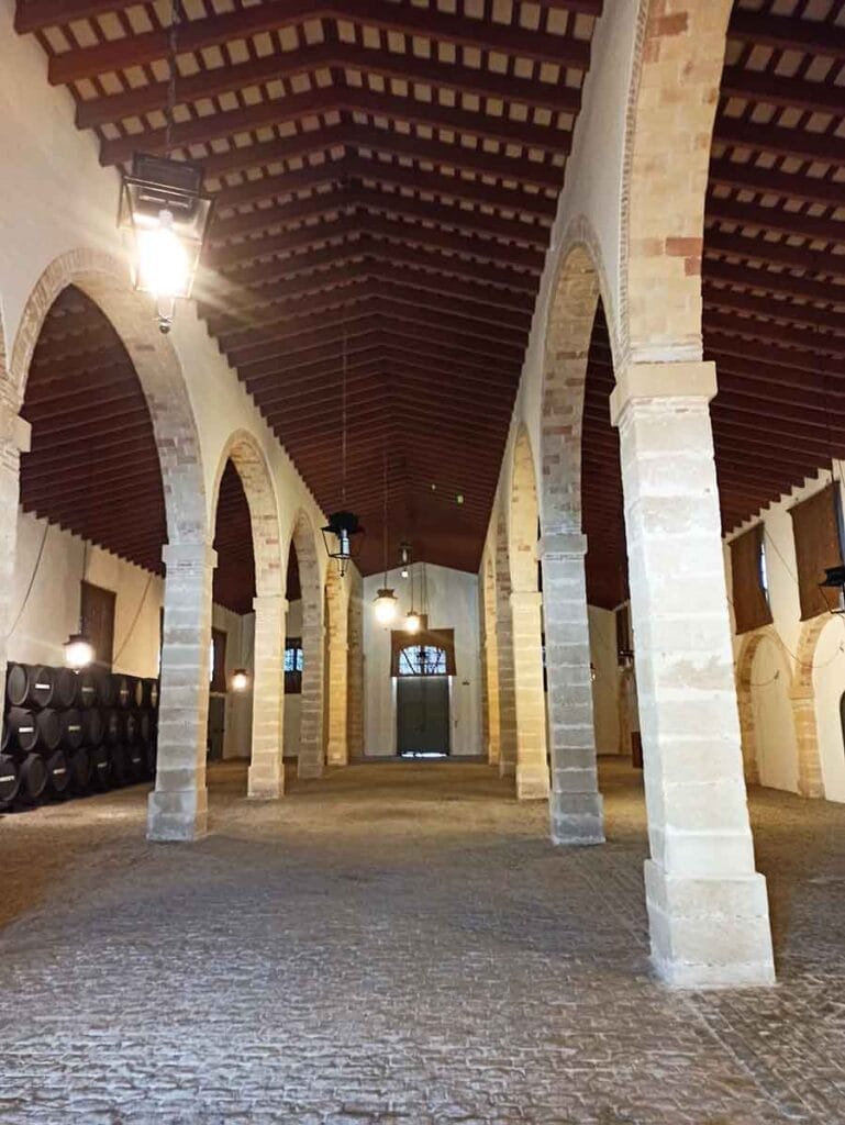 Aunque no se ha podido localizar el proyecto original de esta bodega en el Archivo Histórico Municipal, su estructura de tres naves y tejado a dos aguas soportado por arcadas es similar a la de “Cuvillo Los Moros”, si bien es algo más pequeña.