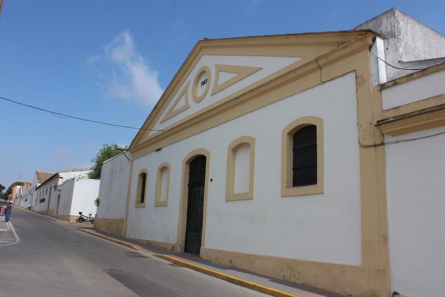 Bodega Puerto Fino: La fachada de esta bodega de cuatro naves paralela a la calle San Francisco contiene seis ventanales adintelados. En el segundo se ha abierto una puerta y en el último se ha realizado una ampliación dando lugar a una ventana más grande.