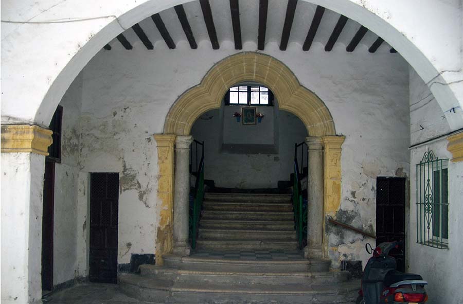 Hipólito Sancho en su conocida “Historia de El Puerto…” (2007 [1943] p.385) señala el hecho de que la vivienda pese a su datación tardía aún mantiene los principios estéticos del Barroco y la describe “…con amplísima fachada ornados sus amplios vanos con volados guardapolvos de quebradas líneas (FOT. 4), atrevidísimo patio descansando sobre cuatro pilares en que descargan tendidísimos arcos toda la mole interna (FOT. 5), magnífica escalera imperial de jaspes con herrajes típicos de la época (FOT. 6) y restos de yeserías francesas ornamentales”.