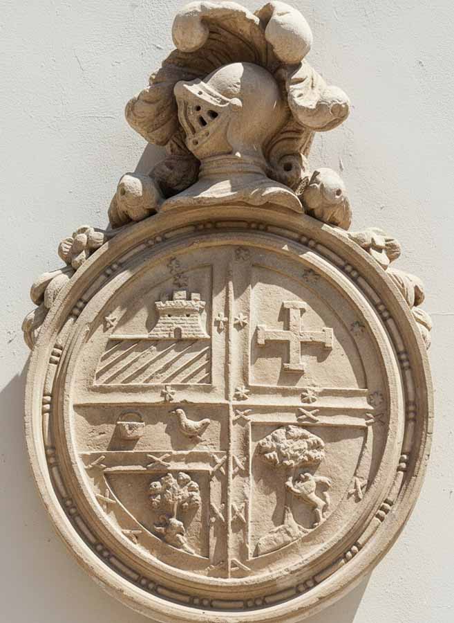 Como es habitual en las casas de la burguesía comercial portuense, tiene en su parte noble tres alturas y sobre la portada, adintelada y enmarcada por delgados baquetones quebrados en los ángulos, figuraba el escudo familiar (FOT. 7 y 8), escudo que al parecer fue retirado por riesgo de desprendimiento y que esperamos no se haya perdido y vuelva a colocarse cuando finalicen las obras de rehabilitación.