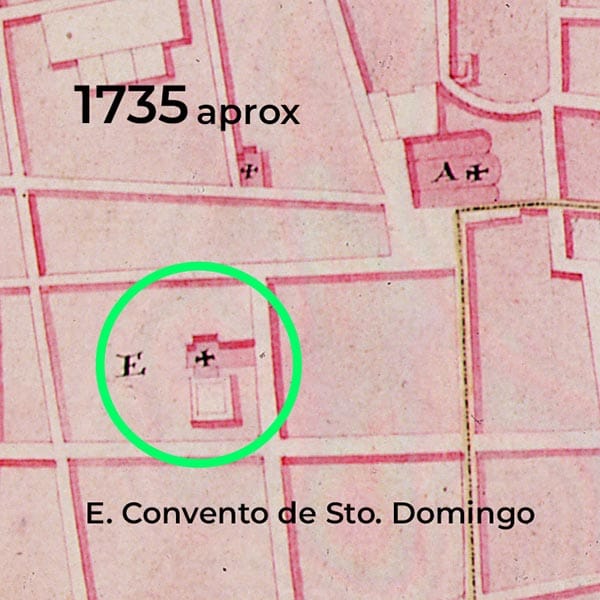 Sin embargo, por numerosos pleitos surgidos, los dominicos no pudieron permanecer en aquel lugar, por lo que su fundador el duque de Medinaceli y conde del Puerto de Sta. María don Antonio Juan Luis de la Cerda compró las casas del almirante Matías de Orellana en la cercana calle de la Píleta (actual Santo Domingo), casi frontera a su palacio, y agregándole otras varias menos importantes se formó un convento bajo la advocación del Santísimo Rosario, con su iglesia provisional a la que se trasladó la comunidad en 1658 (FOT. 1).