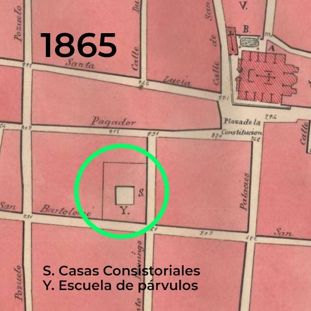 Es en 1953 cuando, tras muchas vicisitudes recogidas por E. Bartolomé (Pliegos de la Academia 15, 2009), en el antiguo convento dominico se inaugura el Instituto Laboral, germen del actual I.E.S ‘Santo Domingo’. Para ello fueron realizadas obras de reforma y adaptación del inmueble a cargo del arquitecto sevillano Joaquín Barquín y Barón, reforma en la que se añade una tercera planta y se levanta la actual portada de estilo ecléctico de la calle Santo Domingo, confiriéndole grosso modo el aspecto que vemos en la actualidad. –