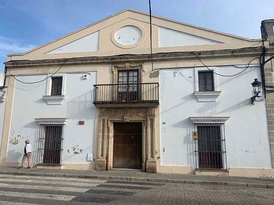 En el proyecto original de construcción del año 1863 (FOT. 1), la fachada era lineal con zócalo y pretil y tenía factura simétrica, con una puerta en el centro y una ventana a cada lado en la mitad superior de la misma y bajo el entablamento. La puerta y las ventanas se encontraban rematadas por arcos escarzanos y estaban recercadas, como es costumbre en las bodegas portuenses, y se encontraban insertas en un espacio delimitado por el zócalo, el entablamento y falsas pilastras. Sobre el entablamento se encontraba un pequeño frontón triangular con un óculo que abarcaría solamente el centro de la fachada.