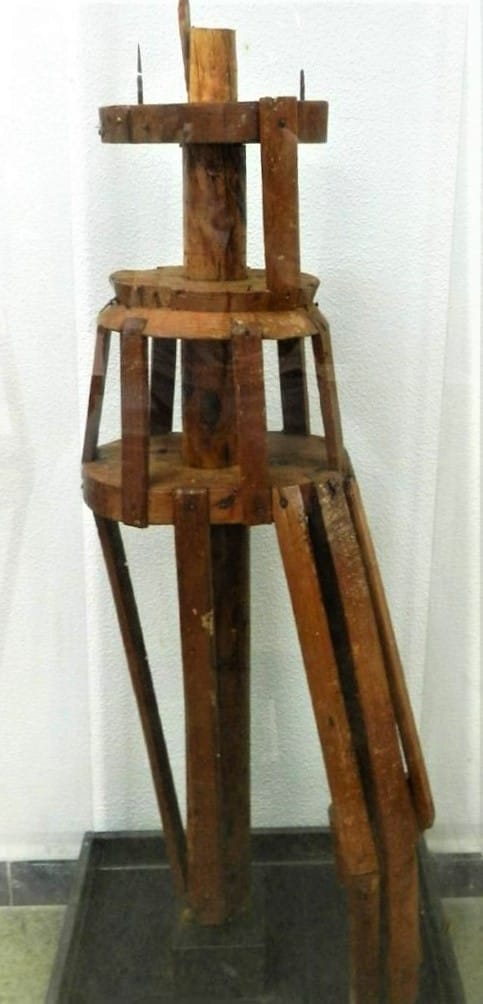 Finalmente, recordamos que la hermandad conserva el candelero original adaptado al dinamismo impuesto a la figura por su imaginero. Se trata de un bastidor en el que, a partir de un vástago cilíndrico vertical, se ensamblan varias piezas de madera para soportar el busto de San Juan, de donde partían sus brazos articulados, otra central que se corresponde con su cintura y otra inferior más complicada para simular las piernas. Listones clavados a estas piezas fortalecen el conjunto y otorgan forma al fingido cuerpo y extremidades. Resulta extraño que uno de los escasos candeleros del siglo XVII que se conservan de la imaginería de escuela sevillana no haya sido expuesto en esta muestra. Por nuestra parte, valoramos el criterio de la hermandad de conservarlo, e invitamos a los portuenses y amantes del arte a visitar esta exposición (FOT.7).
