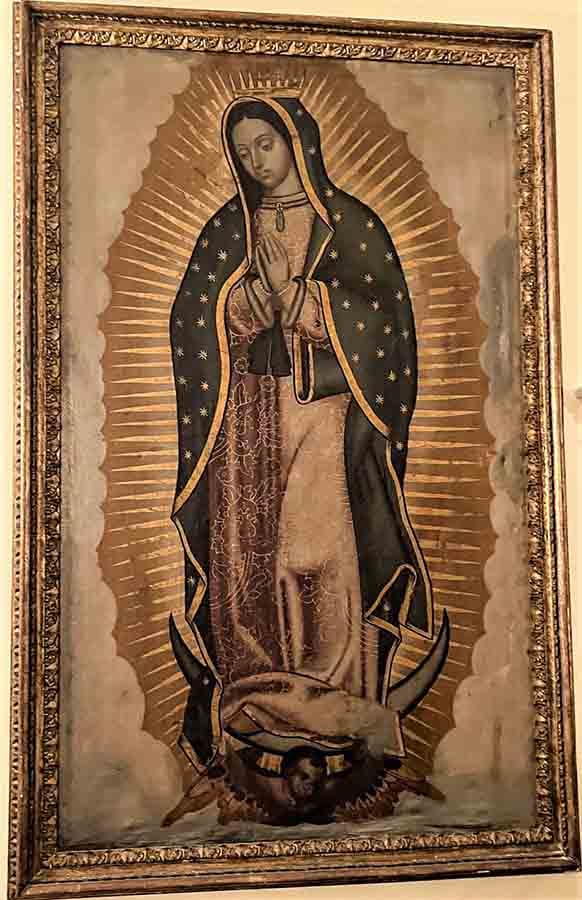 En artículos anteriores, a propósito de la exhibición en la exposición del Museo del Prado “Tan cerca, tan lejos. Guadalupe de México en España” (FOT. 1) dimos a conocer un importante cuadro de la Virgen de Guadalupe atribuido al pintor novohispano José de Ibarra conservado en la Prioral (https://betiloelpuerto.org/patrimonio/la-virgen-deguadalupe-y-el-puerto-de-sta-maria-un-cuadro-de-la-prioral-en-el-museo-del-prado-i/). También adelantábamos que no era la primera vez que esta pintura se mostraba en El Puerto. En 1992 se expuso públicamente junto a otras 25 representaciones en la antigua iglesia conventual de las Capuchinas convertida en Auditorio Municipal.