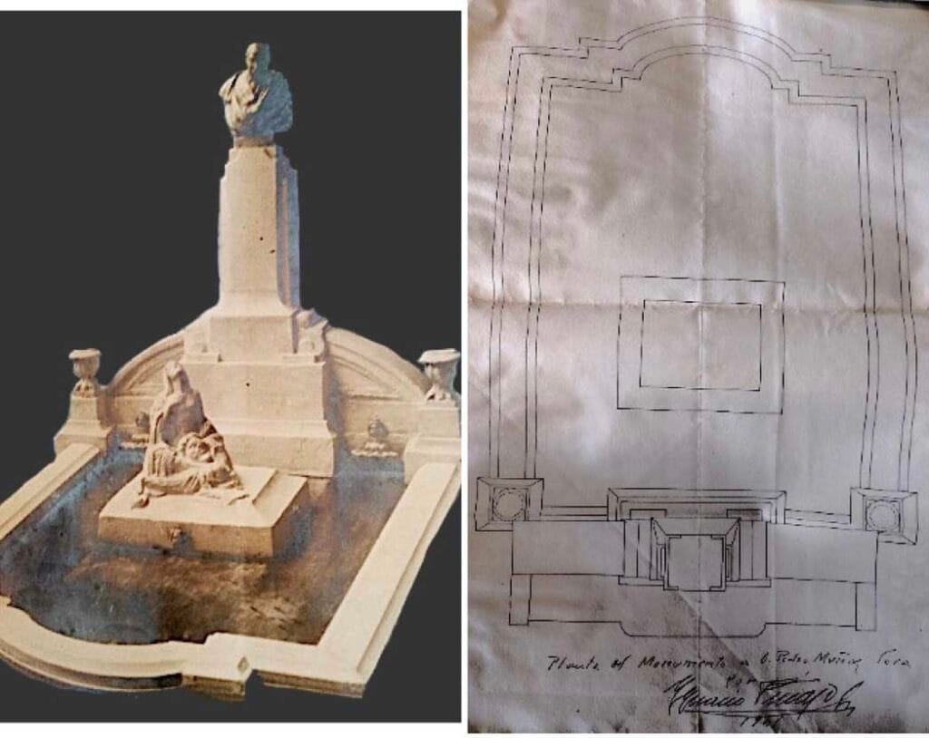 Pinazo había presentado en 1941 un proyecto del monumento con planta a escala, fotografías de maqueta y presupuesto. Consistía en un estanque rectangular con una escultura alegórica en el centro y al fondo el busto del escritor encima de un pedestal (FOT. 1), aconsejando que dicho monumento debería hacerse en una plaza o paseo público rodeado de jardines y con bancos para el descanso.