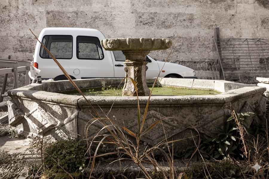 De sobria apariencia exterior (FOT. 3), en la fachada de la calle Conejitos destaca una hornacina que remata la parte central de la tapia que cierra la propiedad al exterior. Se trata de un nicho con arco de medio punto decorado con una venera y jarrones laterales que debió acoger en su momento una escultura (FOT. 4).