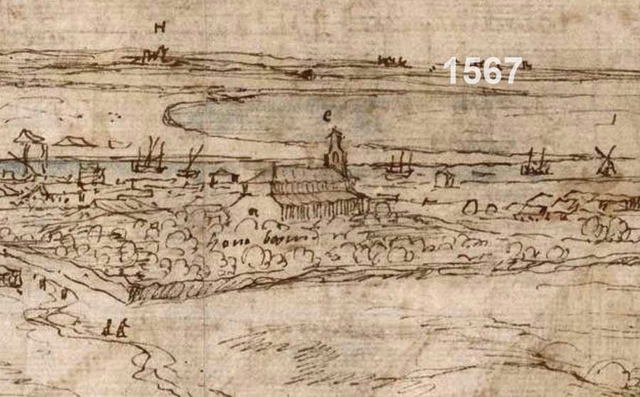 Una precisa imagen de esta ermita en 1567 nos la ofrece Wyngaerde en su vista de la ciudad tomada desde la cuesta de la Belleza. El edificio, con orientación SW- NE, con entrada principal rematada en su correspondiente espadaña presenta tres naves, la central, más elevada. A su alrededor el artista de Amberes dibuja un terreno rodeado por un muro, casi con seguridad el cementerio de los apestados (FOT. 1).
